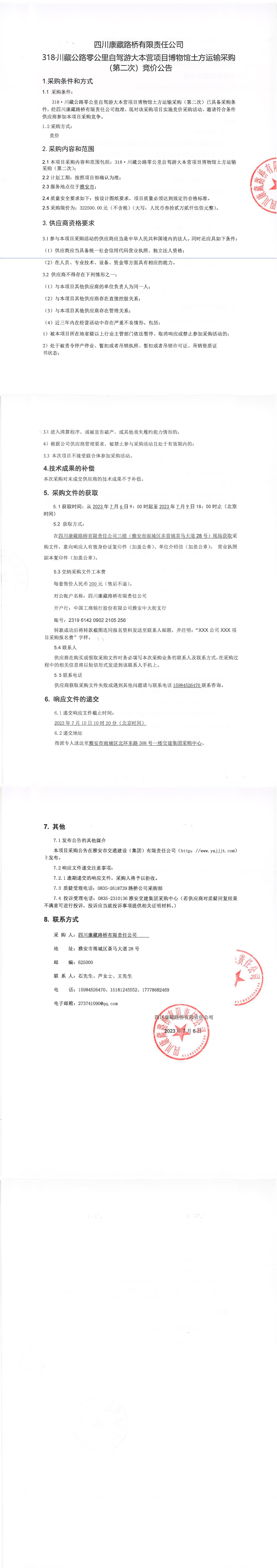 四川康藏路桥有限责任公司318·川藏公路零公里自驾游大本营项目博物馆土方运输采购(第二次)竞价公告