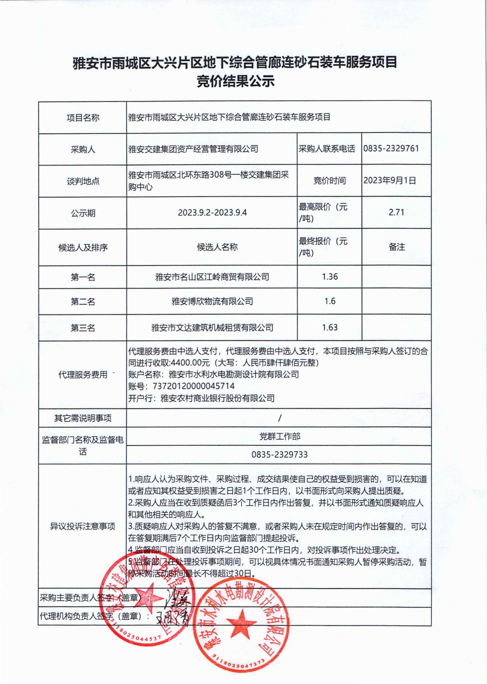 米兰体育-米兰(中国)官网 资产经营管理有限公司大兴片区地下综合管廊连砂石装车服务项目竞价结果公示