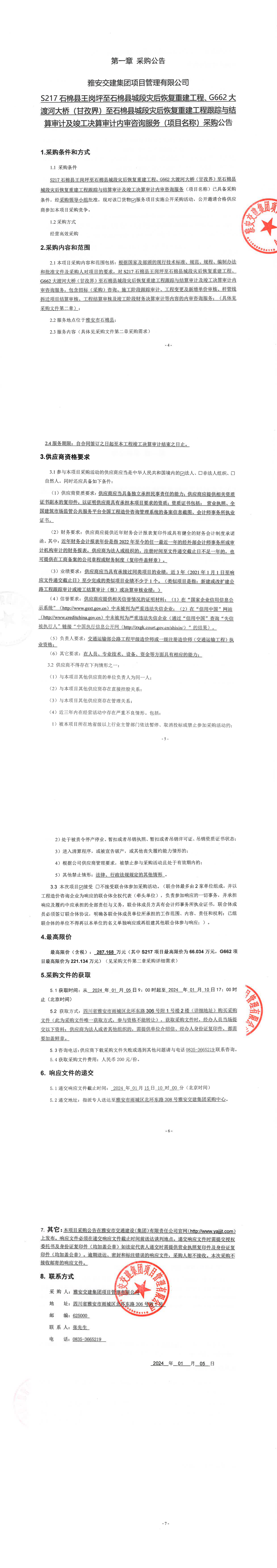 米兰体育-米兰(中国)官网 项目管理有限公司S217石棉县王岗坪至石棉县城段灾后恢复重建工程、G662大渡河大桥(甘孜界)至石棉县城段灾后恢复重建工程跟踪与结算审计及竣工决算审计内审咨询服务(项目名称)采购公告