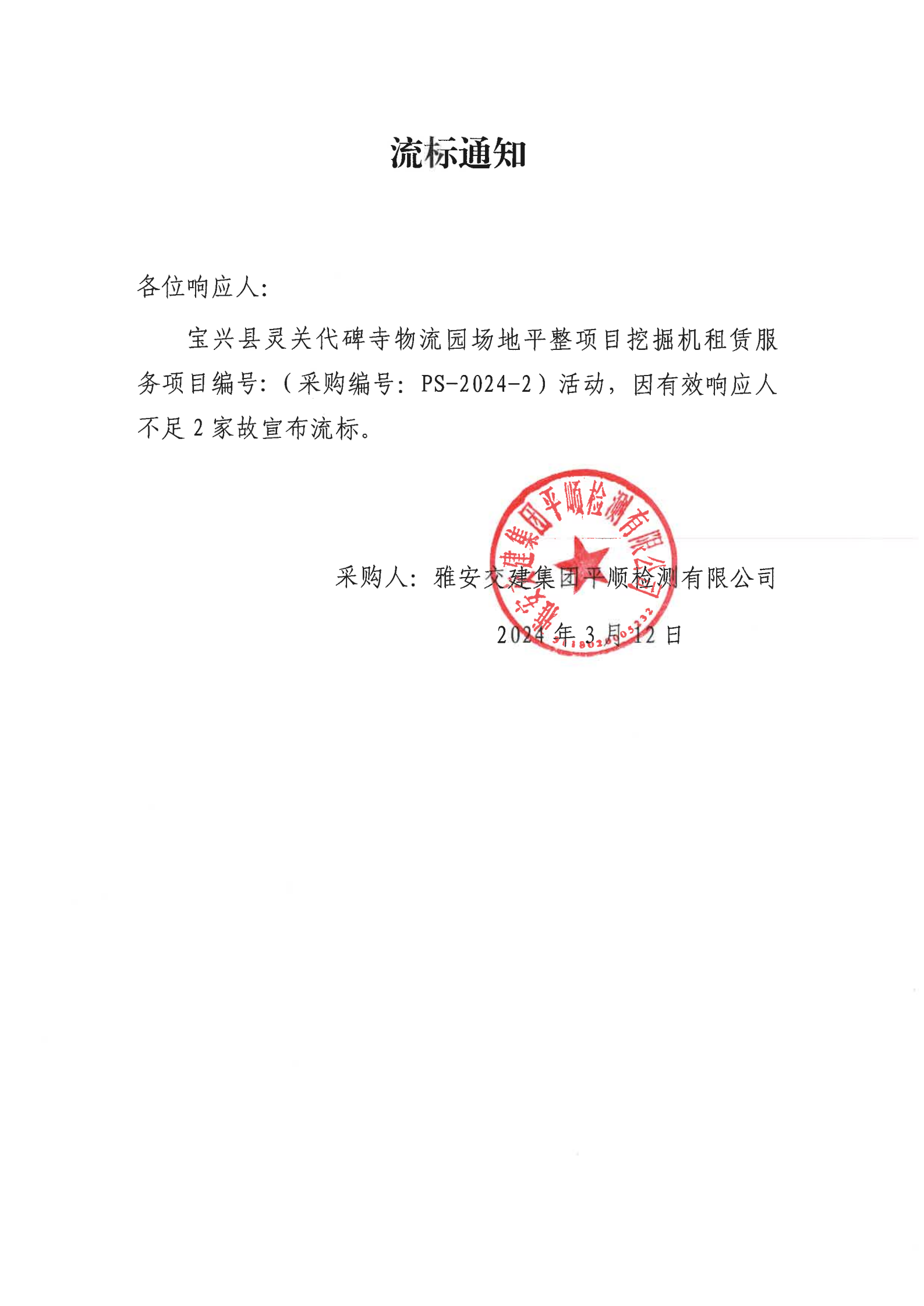 米兰体育-米兰(中国)官网 平顺检测有限公司宝兴县灵关代碑寺物流园场地平整项目挖掘机租赁服务流标通知