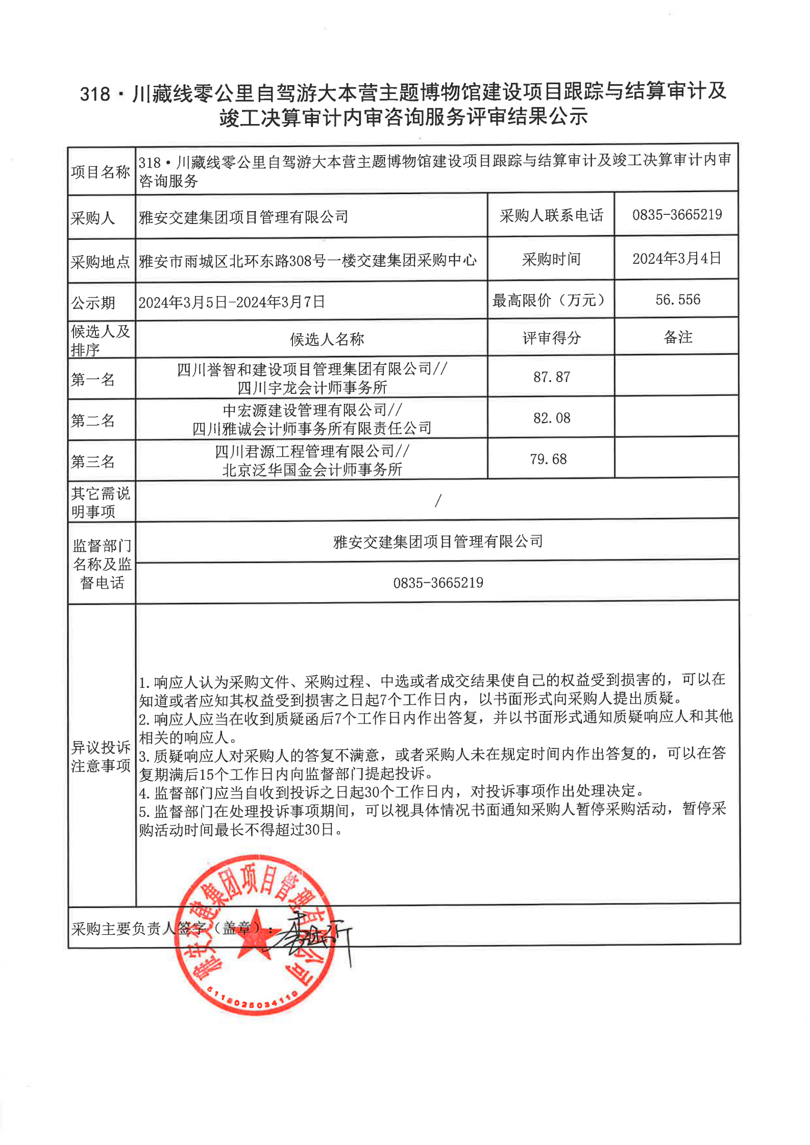米兰体育-米兰(中国)官网 项目管理有限公司318·川藏线零公里自驾游大本营主题博物馆建设项目跟踪与结算审计及竣工决算审计内审咨询服务评审结果公示
