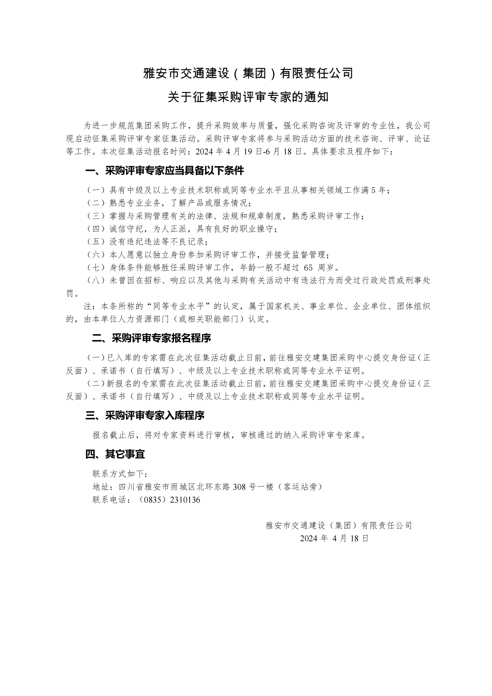 雅安市交通建设(集团)有限责任公司关于“雅安交建云采平台”征集供应商的通知