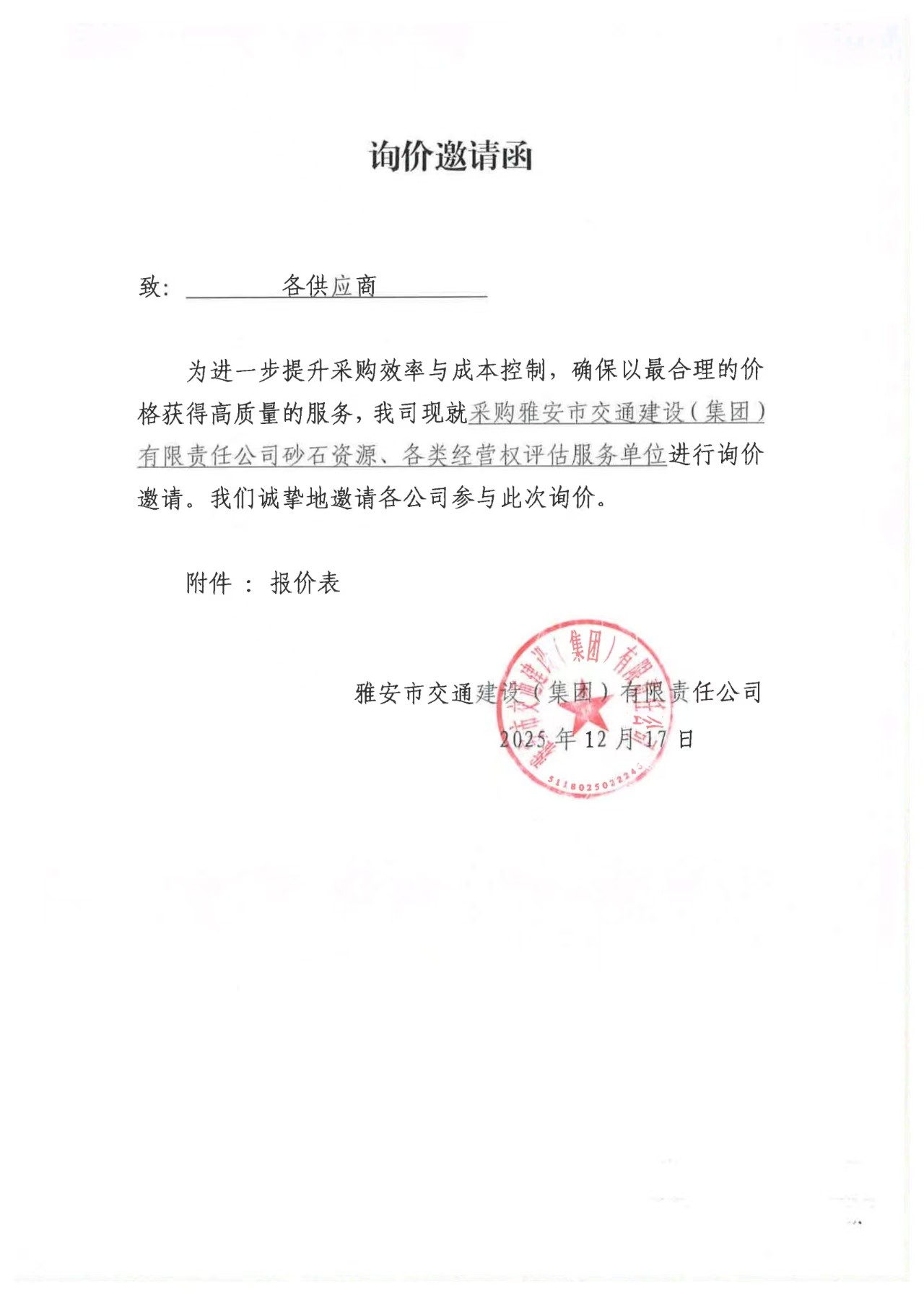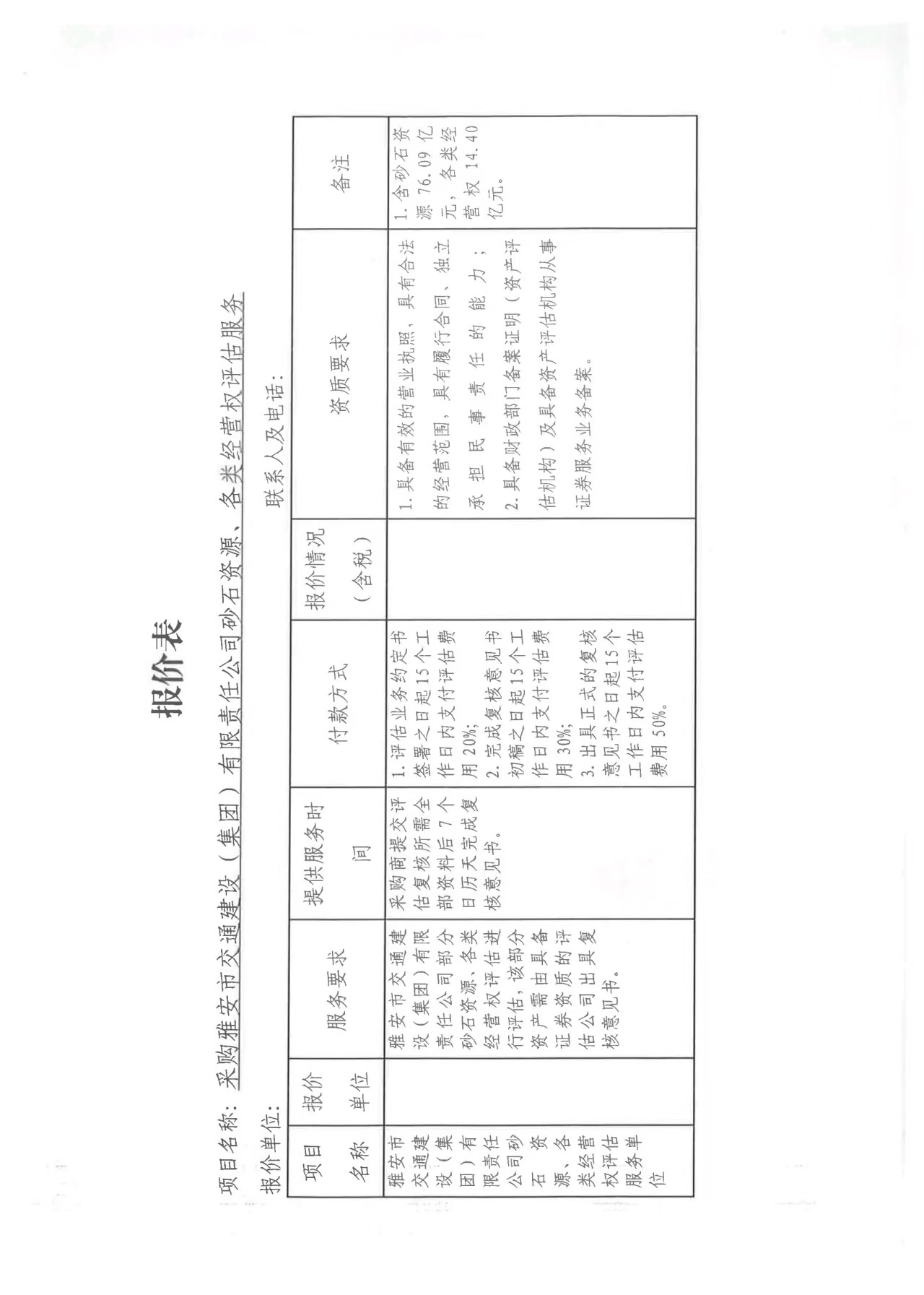 关于米兰体育-米兰(中国)官网 砂石资源、各类经营权评估服务限价的询价函