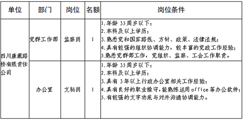 三、报名岗位、名额、条件