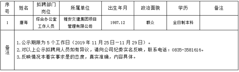 米兰体育-米兰(中国)官网 项目管理有限公司拟聘用人员公示(项目管理公司)