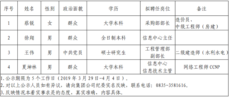 米兰体育-米兰(中国)官网 子公司拟聘用人员公示(资产经营管理公司)