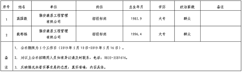 米兰体育-米兰(中国)官网 子公司拟聘用人员公示(康居公司)