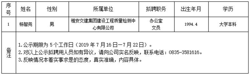 米兰体育-米兰(中国)官网 子公司拟聘用人员公示(工程质量检测中心)