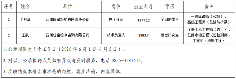 四川康藏路桥有限责任公司拟聘用人员公示(人才引进)