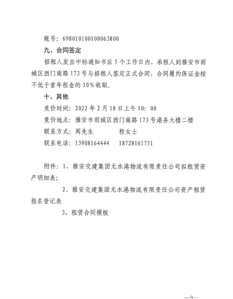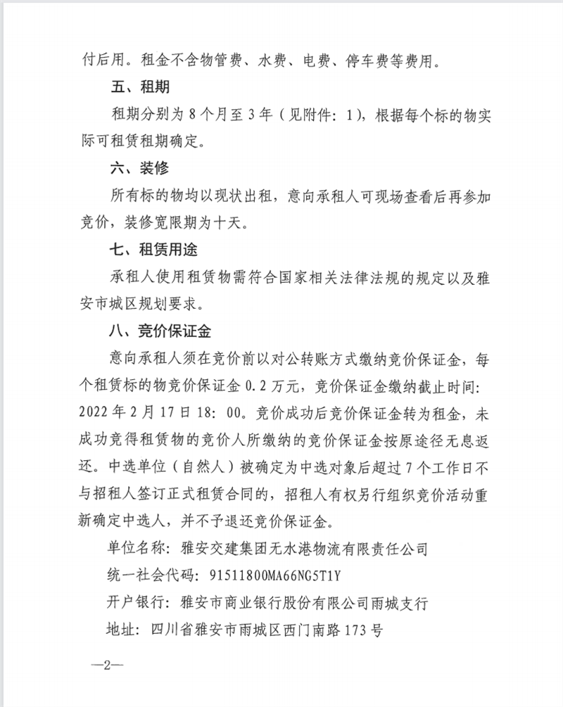 无水港公司关于闲置资产公开招租的公告