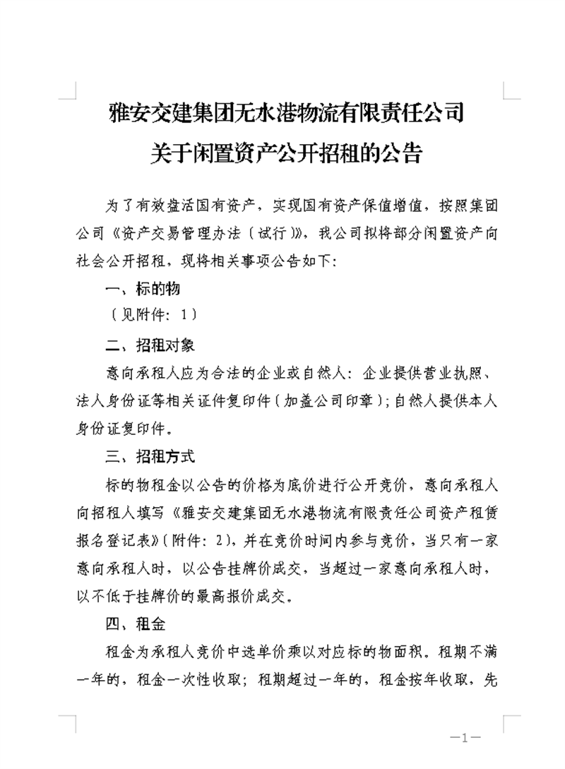 米兰体育-米兰(中国)官网 无水港物流有限责任公司关于资产挂网招租的公告