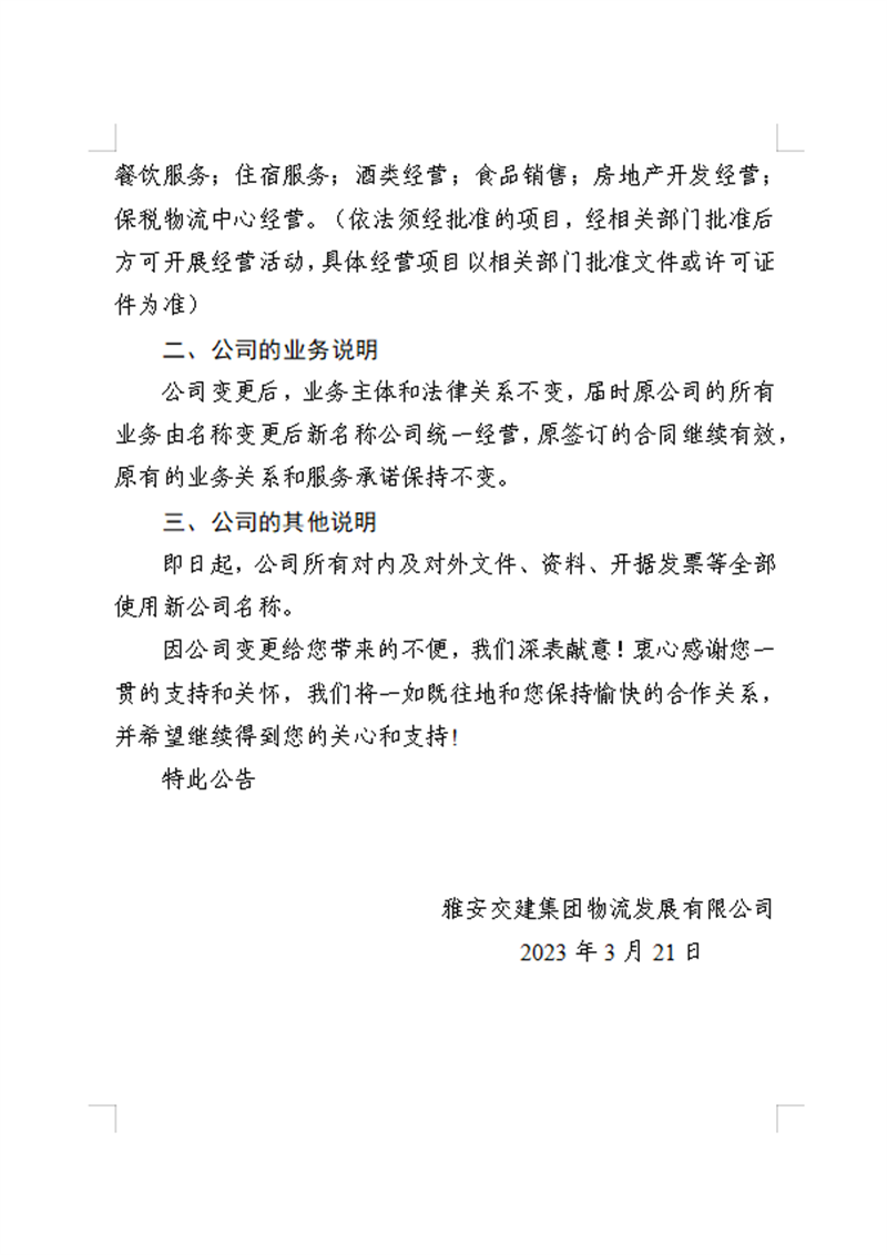 米兰体育-米兰(中国)官网 物流发展有限公司关于米兰体育-米兰(中国)官网 无水港物流有限责任公司工商变更的公告