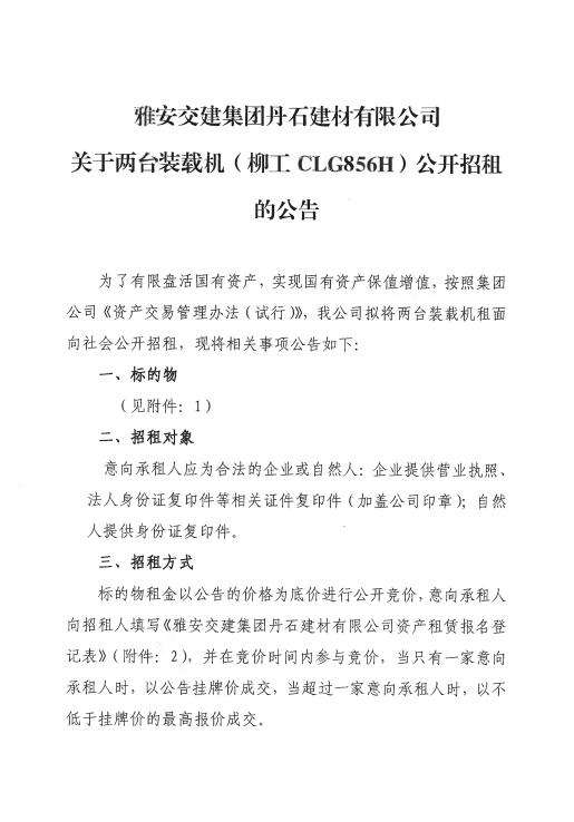 米兰体育-米兰(中国)官网 丹石建材有限公司关于2台装载机公开招租的公告附件