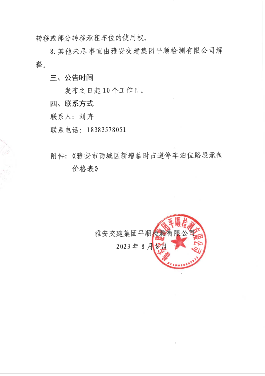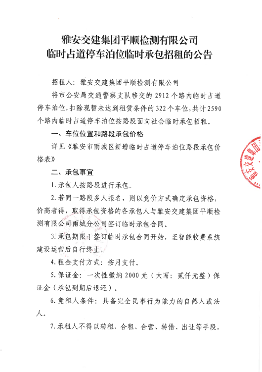 米兰体育-米兰(中国)官网 平顺检测有限公司临时占道停车泊位临时承包招租的公告