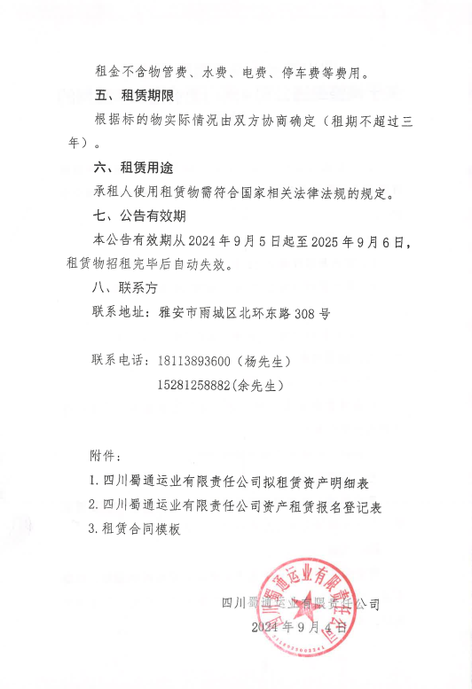 四川蜀通运业有限责任公司关于调整蜀通公司4间门面价格二次挂网的公告附件