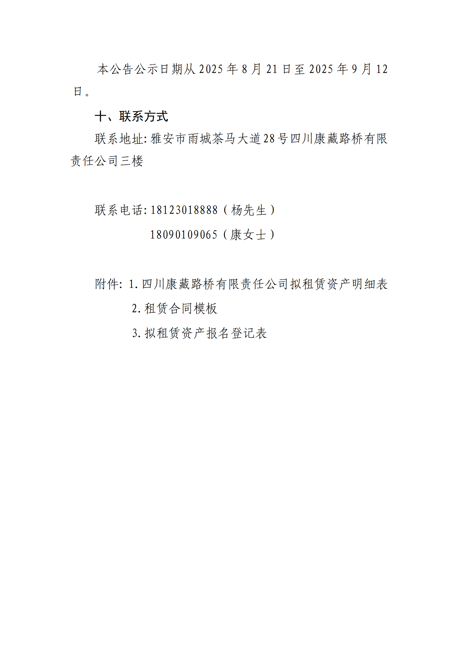 四川康藏路桥有限责任公司站前广场资产招租公告