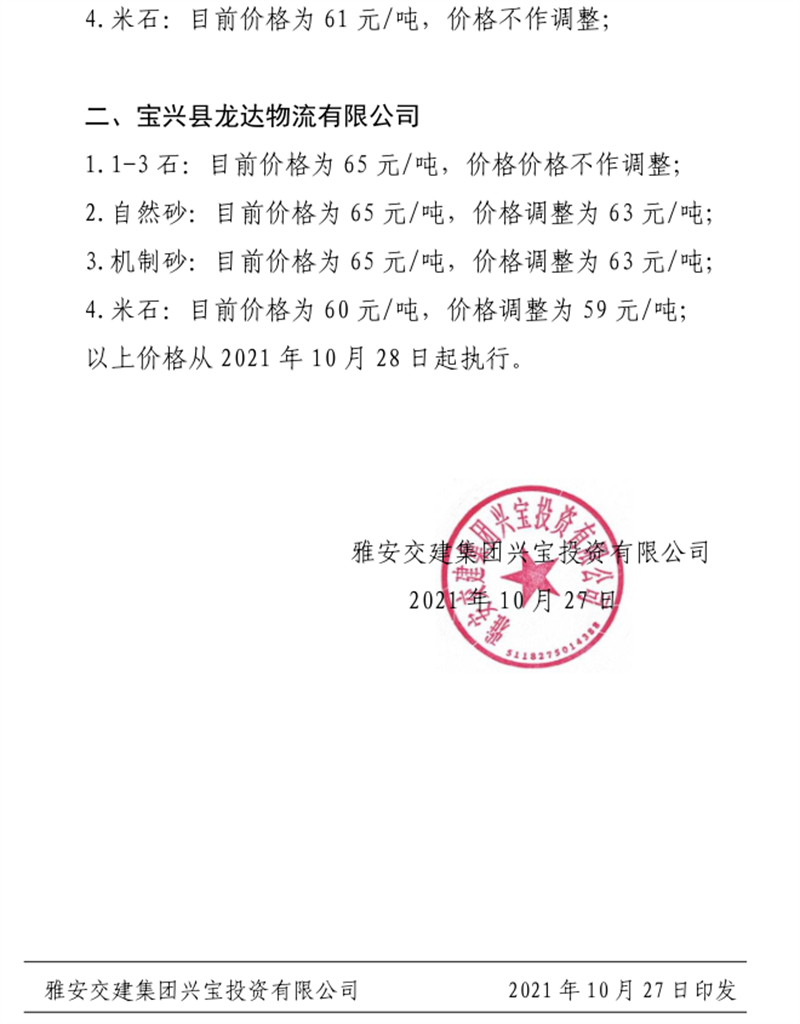 米兰体育-米兰(中国)官网 兴宝公司关于调整成品料销售价格的通知(2021.10.26)