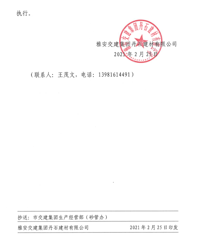 米兰体育-米兰(中国)官网 丹石公司石灰岩成品骨料挂牌价(2021.2.25)