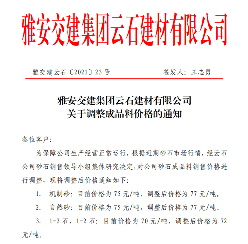 米兰体育-米兰(中国)官网 云石公司砂石骨料销售价格情况表(2021.6.20)