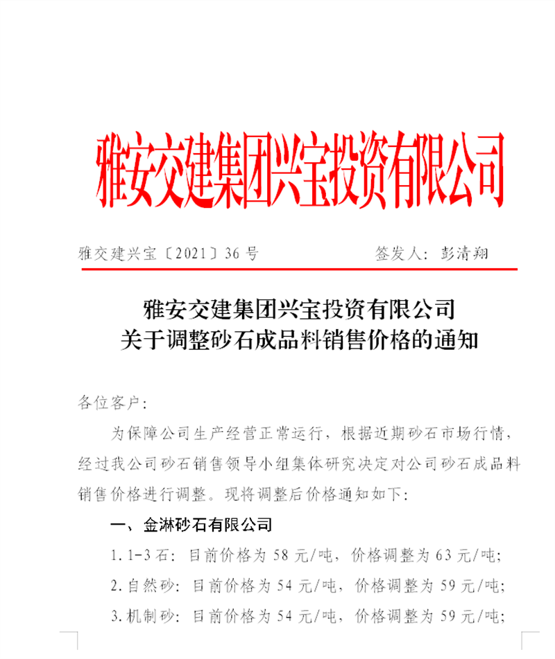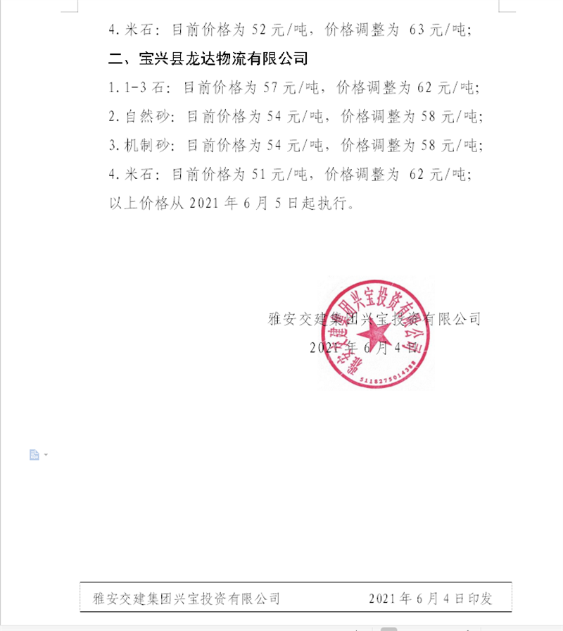 米兰体育-米兰(中国)官网 兴宝公司砂石骨料销售价格情况表(2021.6.5)
