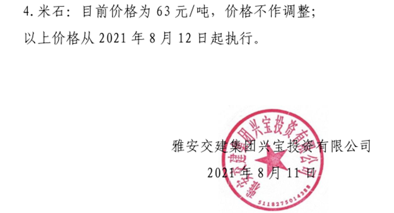 米兰体育-米兰(中国)官网 兴宝公司砂石骨料销售价格情况表(2021.8.12)